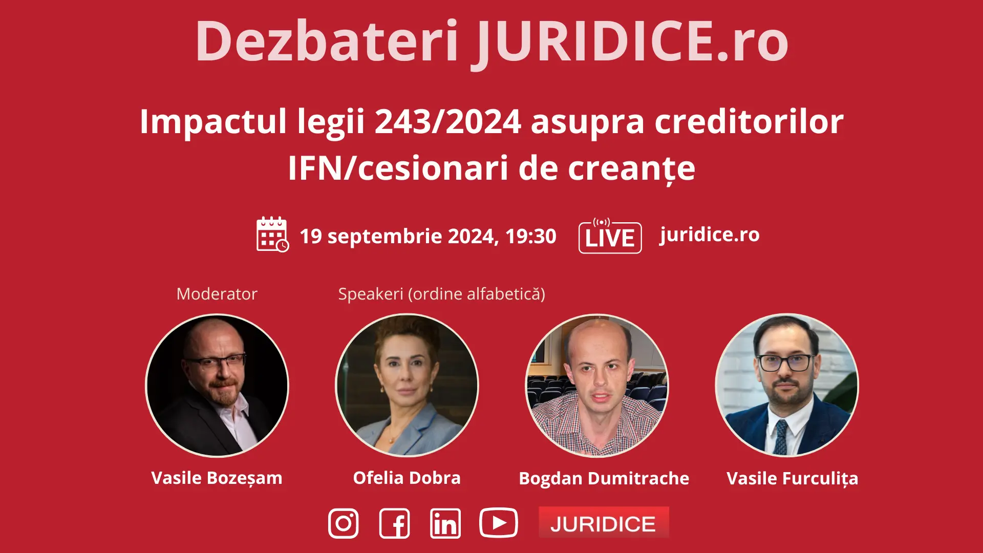 Drept bancar Litigiile bancare și crizele financiare: lecții din trecut, soluții pentru viitor / 31 martie 2025 (ediția 682) Barierele legislative în contextul digitalizării activității bancare / 19 februarie 2025 (ediția 676) Fraudarea creditorilor – eficacitatea mijloacelor actuale pentru combaterea ei / 23 septembrie 2024 (ediția 653) Impactul legii 243/2024 asupra creditorilor IFN/cesionari de creanțe / 19 septembrie 2024 (ediția 652) Despre administratori de credite și obligația creditorului de renegociere a creditului / 9 septembrie 2024 (ediția 649) Conferința de drept bancar / Facultatea de Drept din Timișoara / Colocviile juridice ale Băncii Naționale a României | SESIUNEA III Conferința de drept bancar / Facultatea de Drept din Timișoara / Colocviile juridice ale Băncii Naționale a României | SESIUNEA II Conferința de drept bancar / Facultatea de Drept din Timișoara / Colocviile juridice ale Băncii Naționale a României | SESIUNEA I Conferința de drept bancar – Facultatea de Drept din Timișoara – Colocviile juridice ale Băncii Naționale a României | SESIUNEA III Conferința de drept bancar – Facultatea de Drept din Timișoara – Colocviile juridice ale Băncii Naționale a României | SESIUNEA I 123…8 Next