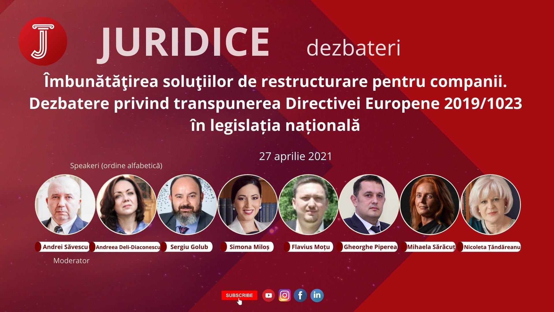 Dreptul insolvenței Îmbunătăţirea soluţiilor de restructurare pentru companii. Dezbatere privind transpunerea Directivei Europene 2019/1023 în legislația națională (ediția 457) Participarea insolvenților la achiziții publice (ediția 221) Prescripția extinctivă și insolvenții (ediția 367) Dezbateri Juridice 23.01.2017 – Incertitudinile şi pericolele undelor electromagnetice (ediția 123) Planul de reorganizare (ediția 327) Aplicarea legii 85/2014 în contextul pandemiei Covid-19 și stării de urgență (ediția 342) Penalul ține în loc insolvența? (ediția 290) Judecătorul sindic. Un filo-debitor? (ediția 255) Tratamentul garanțiilor mobiliare în procedura insolvenței (ediția 183) Mijloace de suspendare a procedurii de valorificare a activelor în procedura insolvenţei (ediția 196) 123 Next