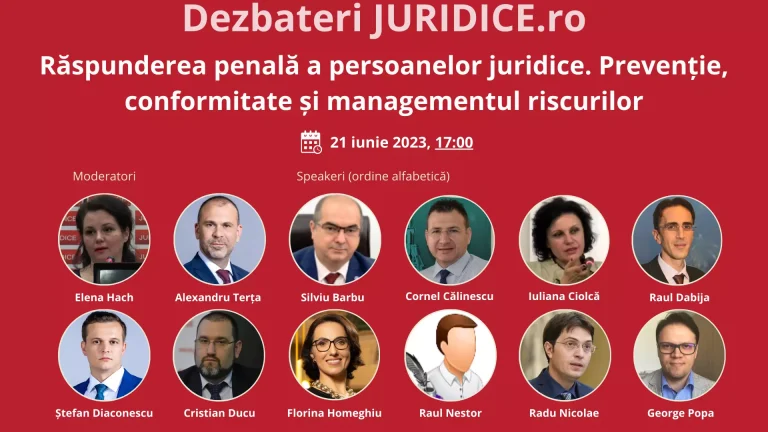 Răspunderea penală a persoanelor juridice. Prevenție, conformitate și managementul riscurilor / 21 iunie 2023 (ediția 599)